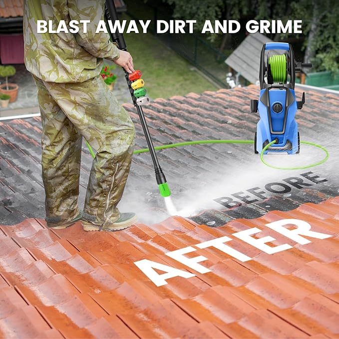 • EASY TO PLUG AND GO: Say goodbye to all them complicated setups. With its intuitive design, our 5000 psi electric pressure washers can be put together in a jiffy. They're good for all sorts of folks, whether you're a homeowner or a pro. Just flick that power switch, hook up your water, squeeze that trigger, and you'll be spick and span in a flash! We even throw in some simple instructions to lend you a hand