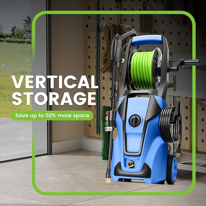 Electric Pressure Washer Adjustable 5000PSI 4.0 GPM Power Washers Electric Powered with 33ft Hose Reel, 4 Nozzle and Foam Cannon, Powerwashers Cleaner Machine for Home, Cars, Patio, Blue
