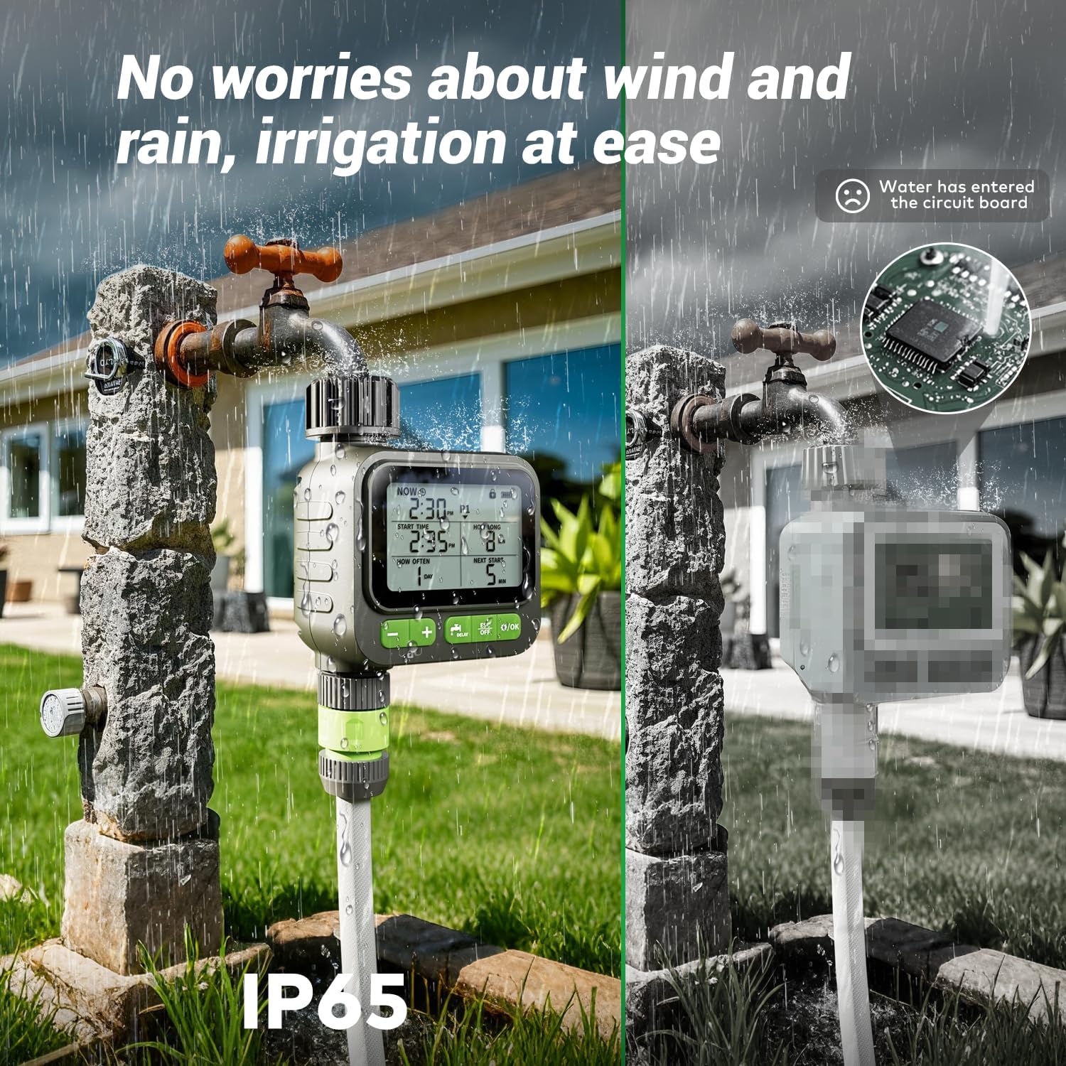 • 【Smart Irrigation Hub: 4-Program Control】Turn ordinary faucets into programmable systems with 4 independent schedules (P1-P4). Set start times (00:00-23:59), durations (1s-99h), and frequencies (1h-30d) for lawns, gardens, and pots.