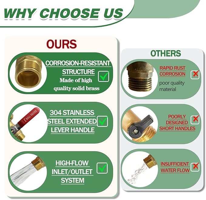 • 【Extended Stainless Steel Handle】Features a 304 stainless steel long lever handle for effortless on/off control, reducing hand strain during frequent switching.