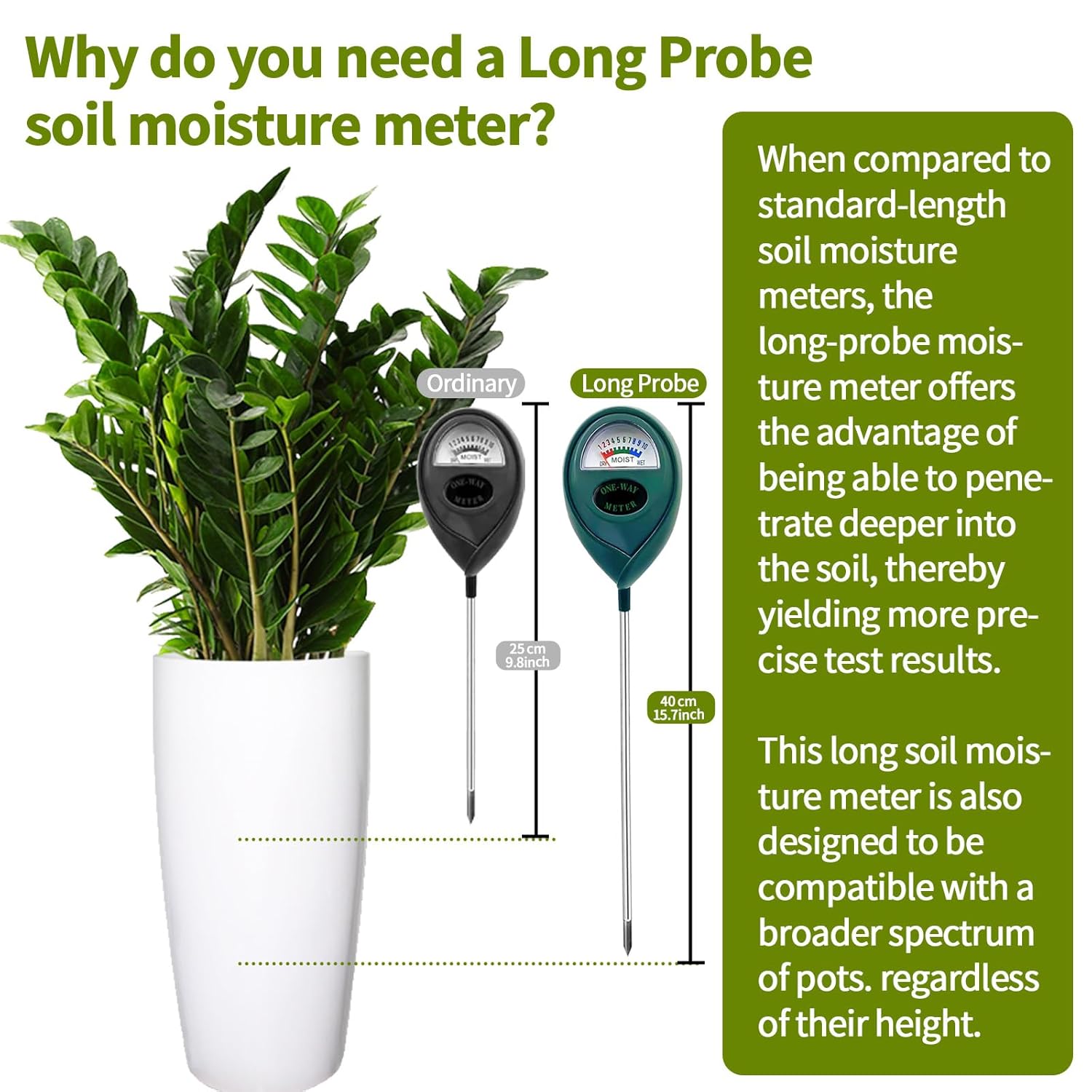 • Instant moisture measurement: plant moisture meter no battery required, just insert the probe tip into the soil for a few minutes to the plant root height, you can get the test result immediately from the indicator pointer and help your plants grow healthily. Our plant water meter has an improved high-quality sensor probe, which makes the quality more stable and durable, bringing you more accurate test results.