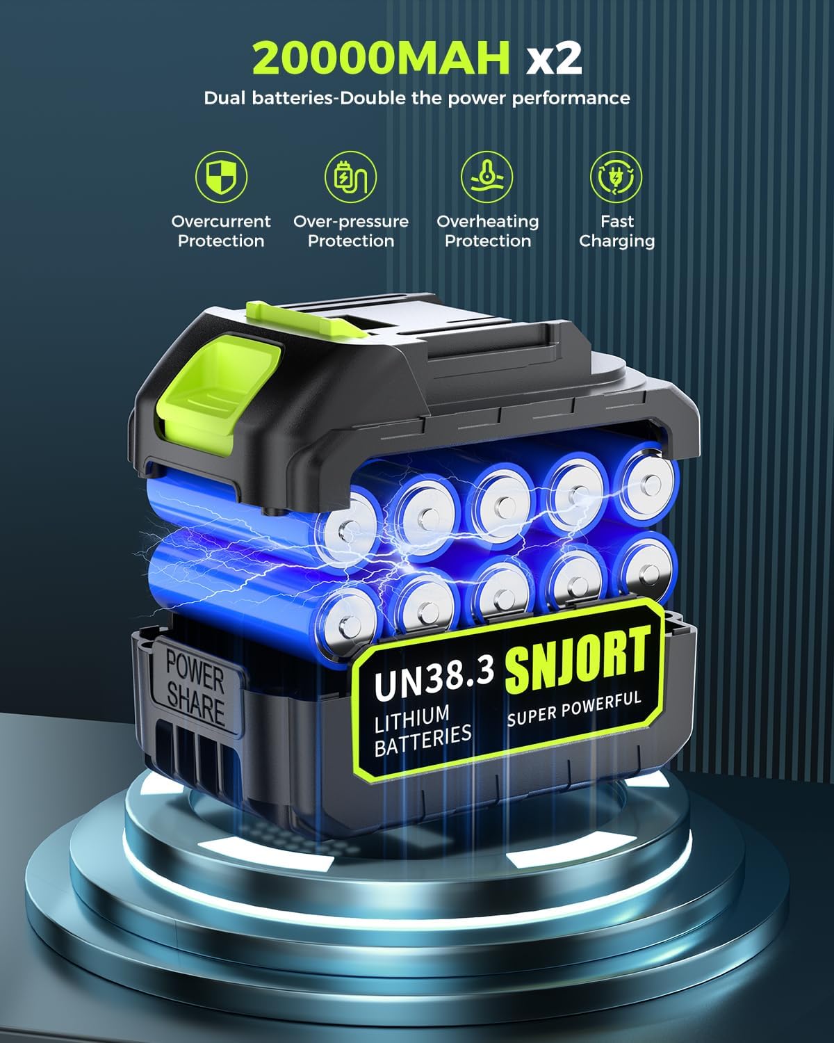 • Complete Leaf Blower Package: This cordless leaf blower is equipped with two 20,000mAh large-capacity batteries that provide up to 50 minutes of continuous operation. The Cordless leaf blowers do not require wires to provide faster, easier and easier cleaning.
