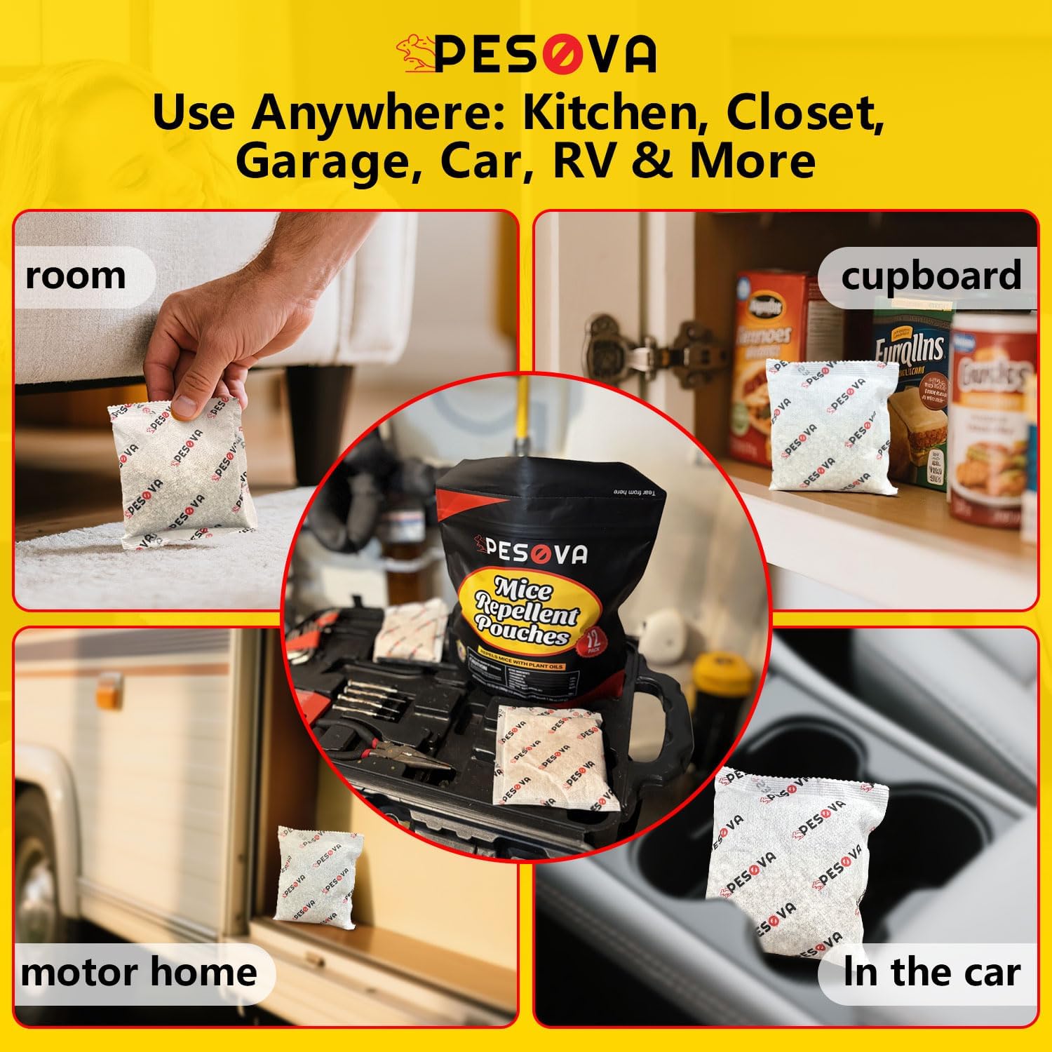 Mouse Repellent Pouches, Natural Rodent Repellent for Home, Car, RV, Garage, and Storage-Peppermint Scented Mice Repellent, Long-Lasting Indoor & Outdoor Rodent Defense (12 Pack)