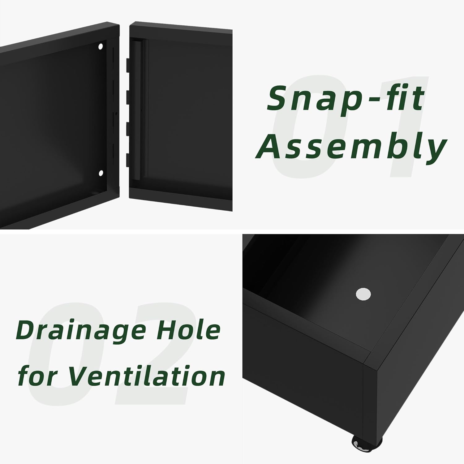 • Effective Drainage System: With a 12-inch deep planting bed and drainage holes, this planter prevents waterlogging, ensuring your plants receive the ideal moisture for healthy growth.