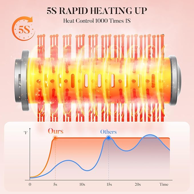• Fast Drying Power: This hair styler brush accelerates blow-drying and smooths frizz. Experience salon-speed drying with a powerful 110,000 RPM high-speed motor and 28 m/s airflow that cuts drying time in half. The lightweight design (just 1 pound) makes styling effortless, even with one hand