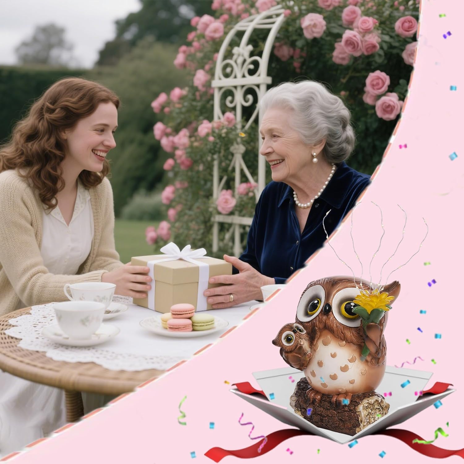 • Funny Owl Garden Statues: Charming owl decor shows a mother owl holding her baby while standing on a tree branch, gently shining a lantern toward the sky as they gaze at the stars. This heartwarming scene is full of childlike wonder. Perfect garden decorations for patios, porches, yards, balconies, fences, or walkways. A magical touch to your outdoor garden decor.