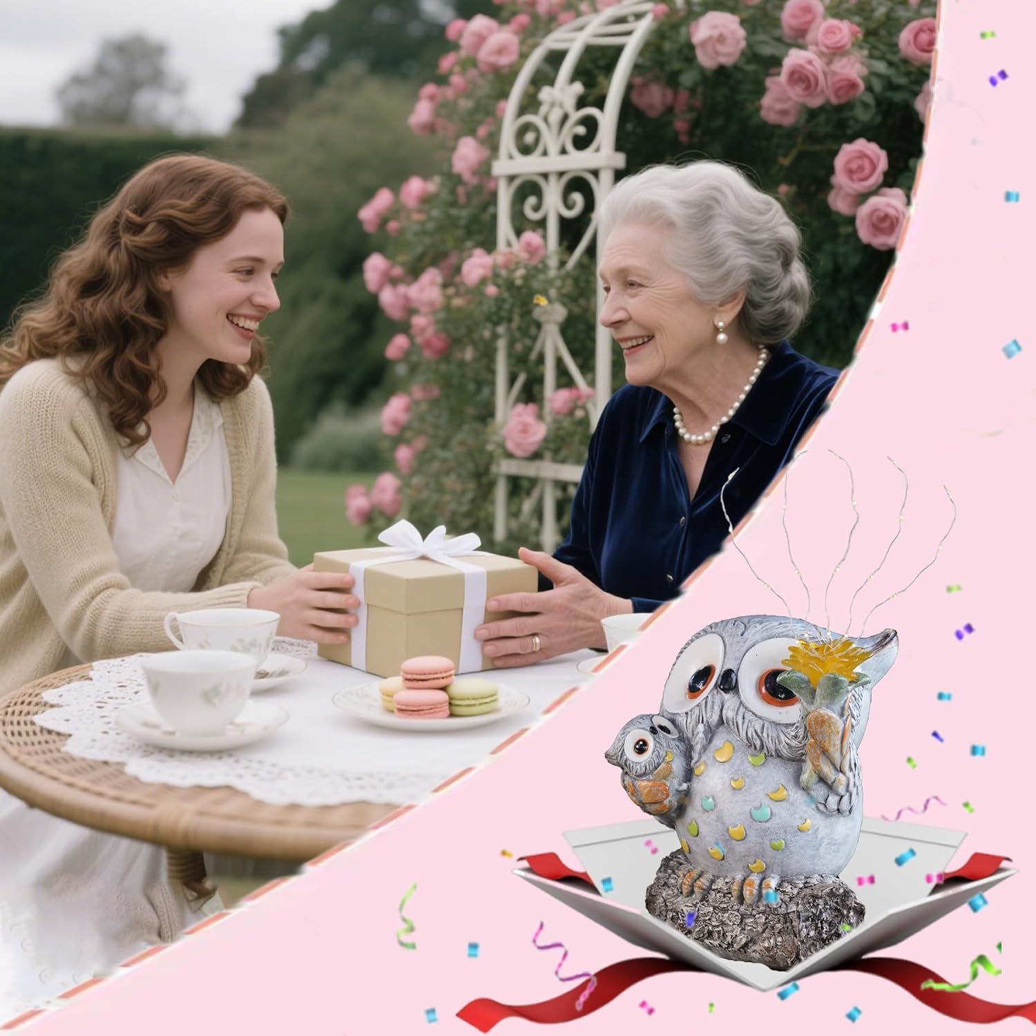 • Funny Owl Garden Statues: Charming owl decor shows a mother owl holding her baby while standing on a tree branch, gently shining a lantern toward the sky as they gaze at the stars. This heartwarming scene is full of childlike wonder. Perfect garden decorations for patios, porches, yards, balconies, fences, or walkways. A magical touch to your outdoor garden decor.