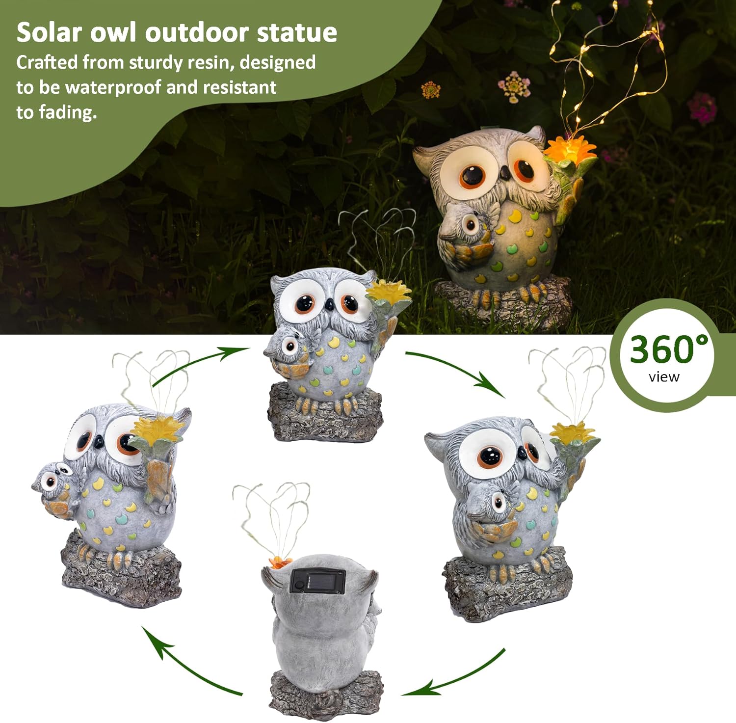 Solar Garden Statues Outdoor Decor, Fairy Owl Statue Garden Decor, Resin Yard Decorations Outdoor for Patio, Porch, Balcony, Lawn Ornaments, House Warming Birthday Gifts for Mom Women Grandma