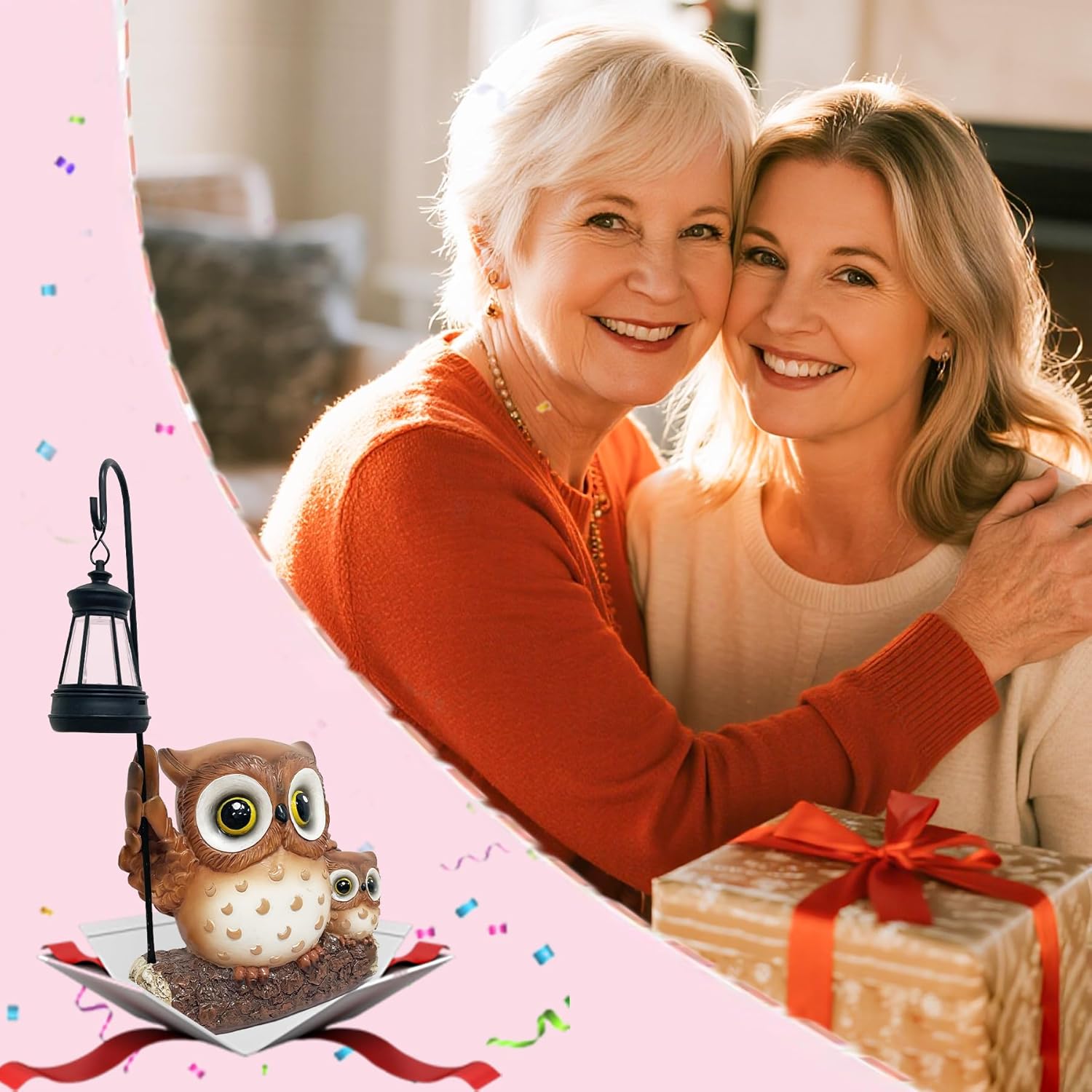 Garden Statues Owl with Solar LED Lantern, Resin Solar Garden Decor for Outside, Yard Decorations Outdoor for Patio, Porch, Balcony, Lawn Ornaments, House Warming Birthday Gifts for Mom Women Grandma