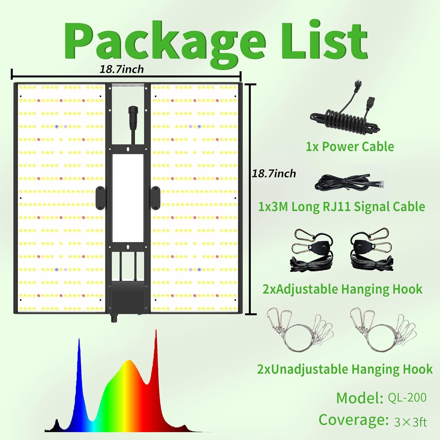 • 【What do you get?】1xLED Grow Light with Driver,1x3M Long RJ11 Signal Cable,2xAdjustable Hanging Kit,2xNon-Adjustable Hanging Kit.We provide 3 years warranty.