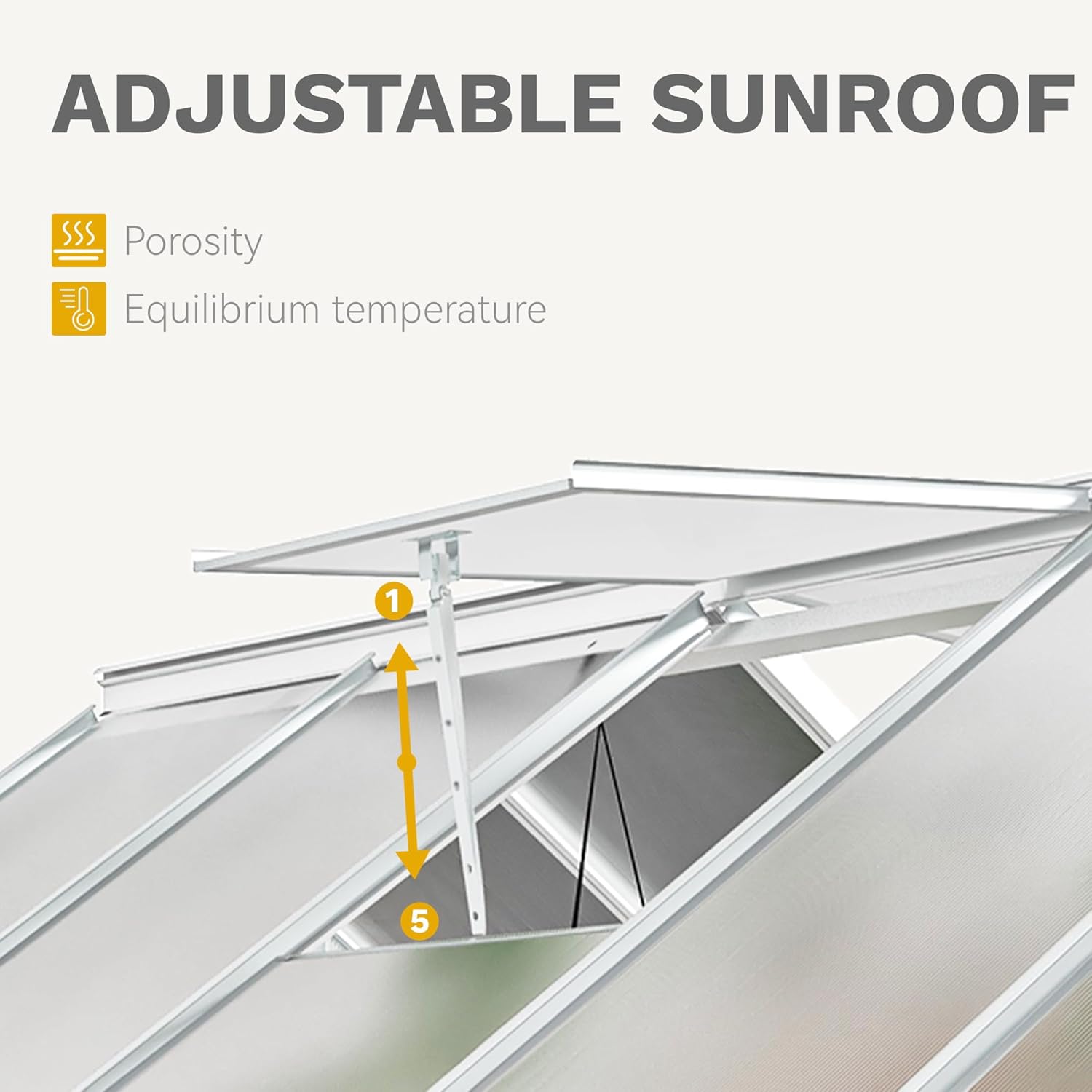 • ALL SEASON GREENHOUSE: Top tilt angle design of the polycarbonate aluminum greenhouse helps to achieve effective wind resistance and drainage capacity; This beautiful and convenient product is good for gardens, decks, and backyards for year-round plant cultivation and protection