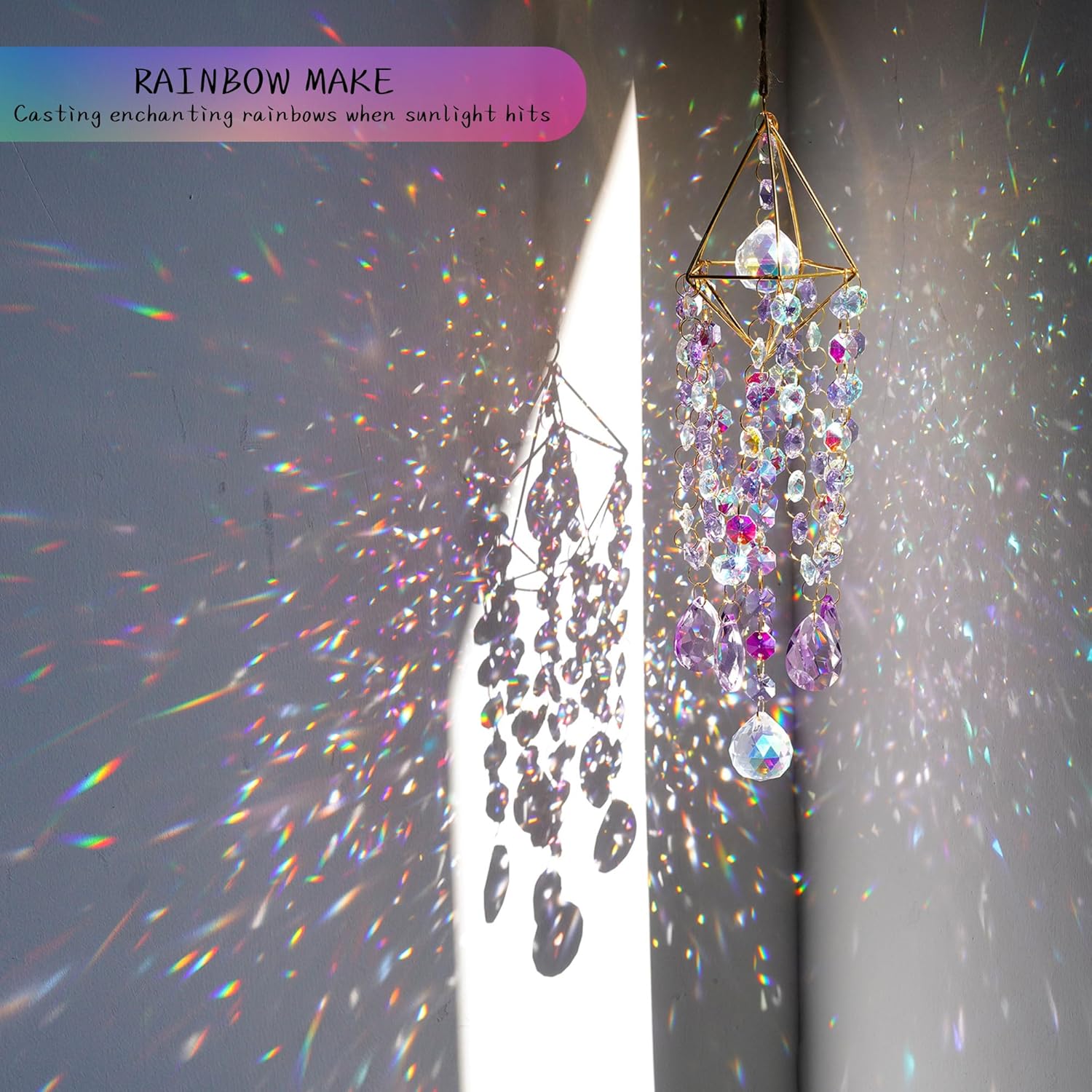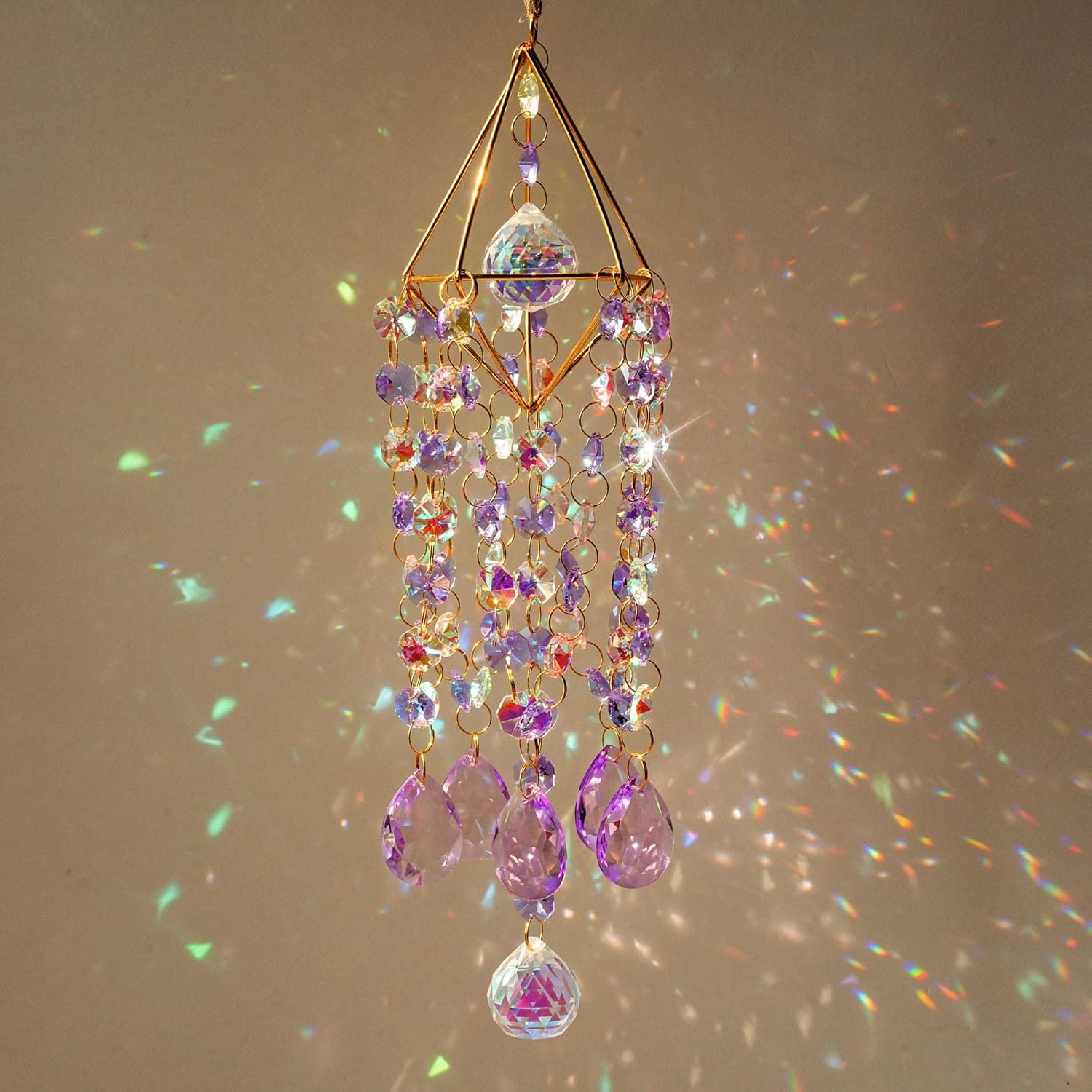 HDCRYSTALGIFTS Sun Catcher, Crystal Prisms Suncatcher for Window Hanging, Rainbow Maker Crystal Sun Catcher Indoor Window Glass Wind Chimes Home Garden Decor Gift, Purple