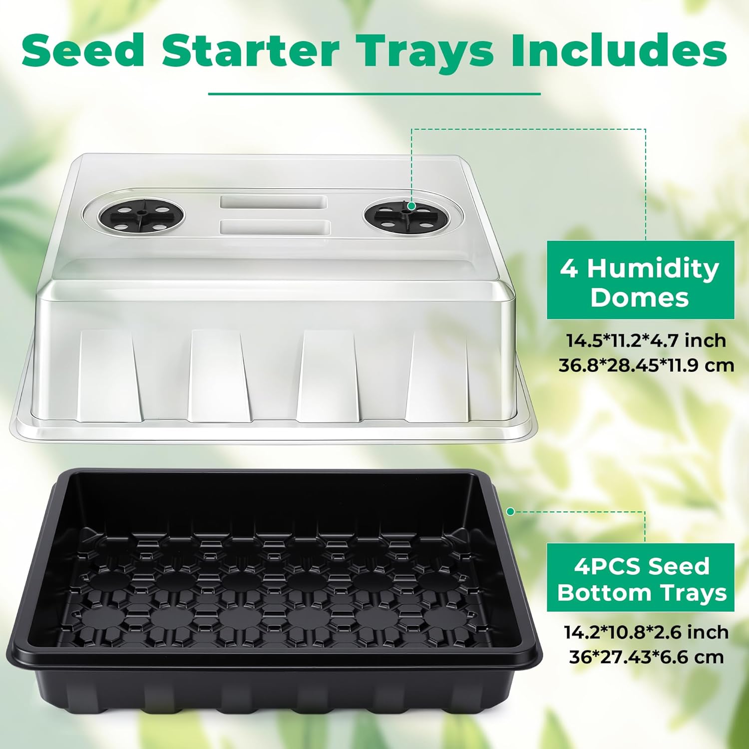 • 【4inch High humidity dome】: Seed starter trays with high humidity dome, this kit offers ample space for seedlings to grow upward and thrive without being constrained.