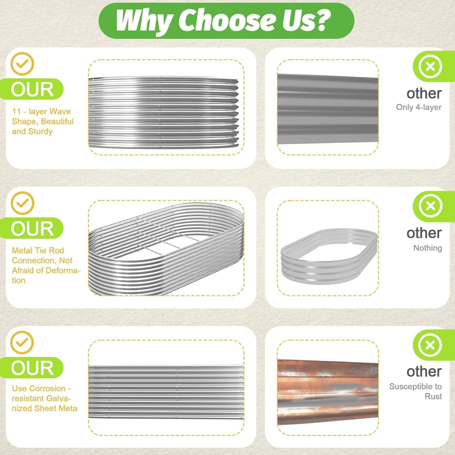 • Durable material: This raised bed is made of galvanized steel with a wavy structure that is stable and can withstand daily wear and tear. Long service life, can be exposed to sunlight, rain and snow for a long time, suitable for various climatic conditions.