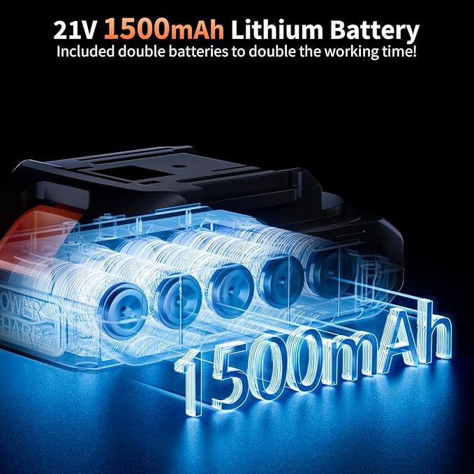 • 【2x 1500mah Large Capacity Battery】This pressure washer has a 21V, 1500mah battery for up to 25 minutes of continuous use.