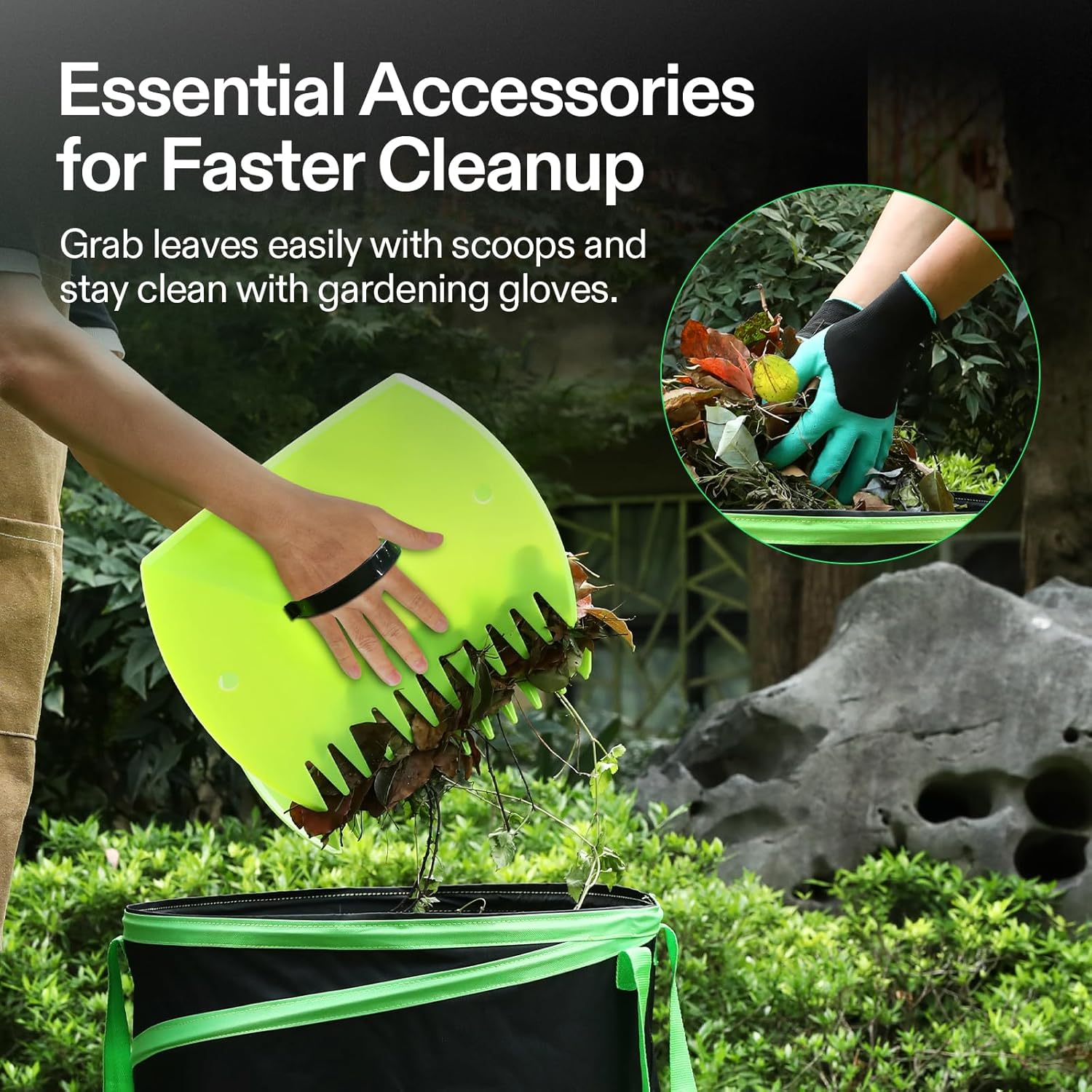 • Accessories for Easy Cleanup: This collapsible basket comes with a pair of gardening gloves and leaf scoops to make leaf collection faster and safer—no more scratched hands or messy piles