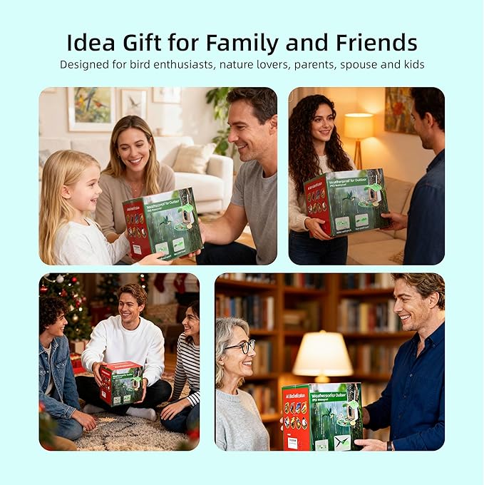 • 【Weatherproof and Bird-Friendly Design】Our birdhouse camera is professionally designed, IP65 weatherproof and bird-friendly design makes it a perfect home for your backyard birds. The large-capacity container can store enough food for birds, and also ensures that birds can eat dry food.