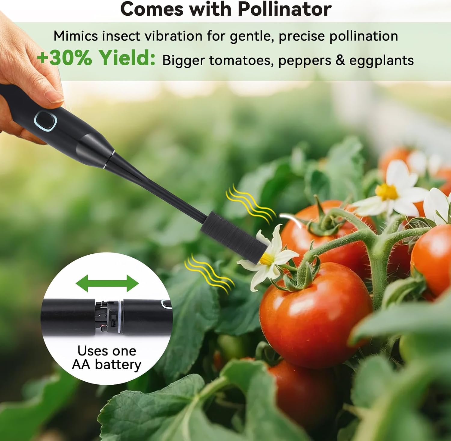 • [Included Pollinator to Helper Grow] -- Our handheld pollinator boosts hydroponic yields by 30% with gentle bee-like vibrations. Soft silicone tips protect plants (ideal for tomatoes, peppers, etc.). Runs on 1 AA batteries (not included—please purchase separately), compact for easy use. 25,000-hour working life—no need for bees or wind, perfect for indoor growers