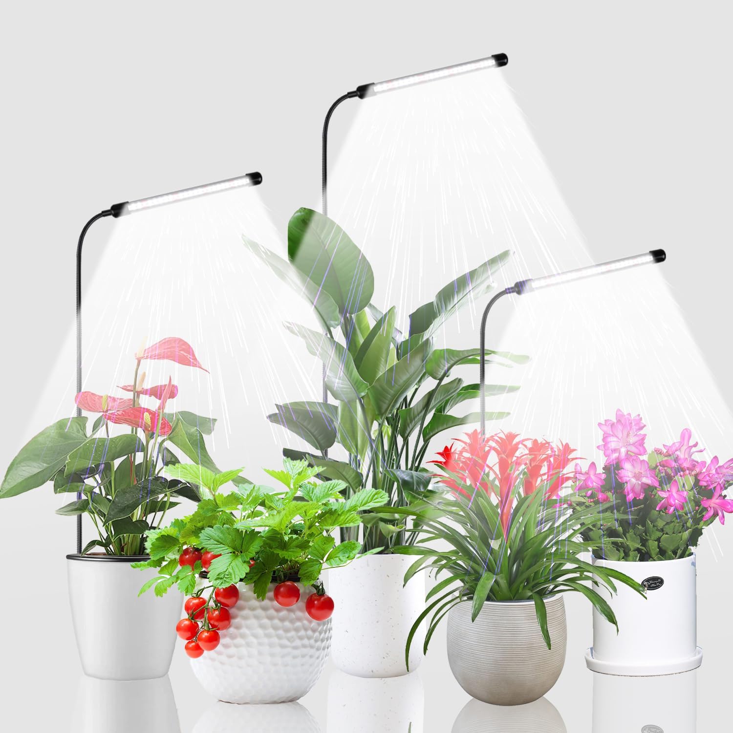 Juhefa Grow Light for Indoor Plants Growing, 6000K Full Spectrum Gooseneck Plant Lamp for Seedings Succulents Small Plants, Auto On/Off Timing & 5 Dimming, 3-Pack