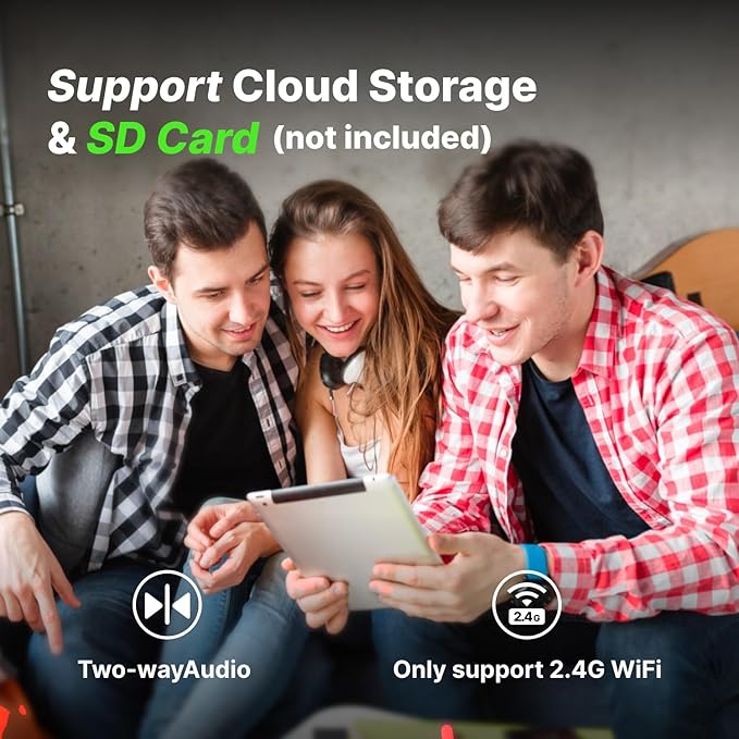 • Solar + Long Battery Life – Built-in 5400mAh battery lasts up to 15 days per charge. Connect the included solar panel for unlimited power—even without direct sunlight. Supports 2.4G WiFi only for stable remote viewing
