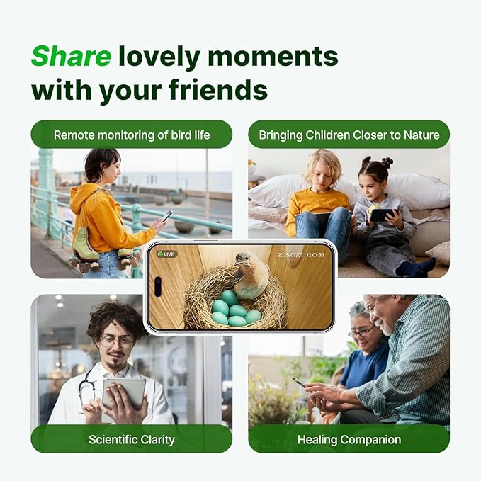 • Easy Install & Perfect Gift: Mount anywhere (walls, fences, poles) with included kits. Inspire children’s love for nature, comfort elderly with "digital pet" companionship, and share joy with bird-watching communities