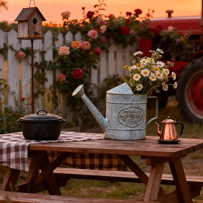 Vintage Metal Flower & Garden Watering Can, Rustic Farmhouse Decorative Watering Pot Planter for Home Patio Backyard Outdoor Plant Care