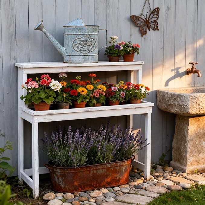 • 【UNIQUE RUSTIC DESIGN】 Boasting a vintage - inspired look, this watering can features a distressed, light - blue and speckled finish that gives it an aged, well - loved appearance. The embossed "magnolia greenhouse and nursery" label adds a touch of old - fashioned charm, making it a standout piece for both gardening and home decor.