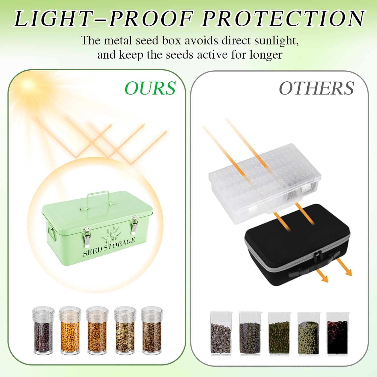 • MULTI-PURPOSE UTILITY: Beyond seeds, this versatile metal storage box with a lid can keep your gardening tools, labels, and more organized. Say goodbye to clutter and hello to a tidy garden space with this all-in-one seed saver storage solution.