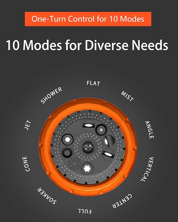 • 【10 Spray Modes】: With a unique design, it features up to 10 different spray modes that can be easily switched to meet the needs of various scenarios such as watering the garden, greening the lawn, bathing pets, and washing cars. Whether it's gently watering young seedlings or powerfully rinsing stubborn stains, it can precisely adapt.