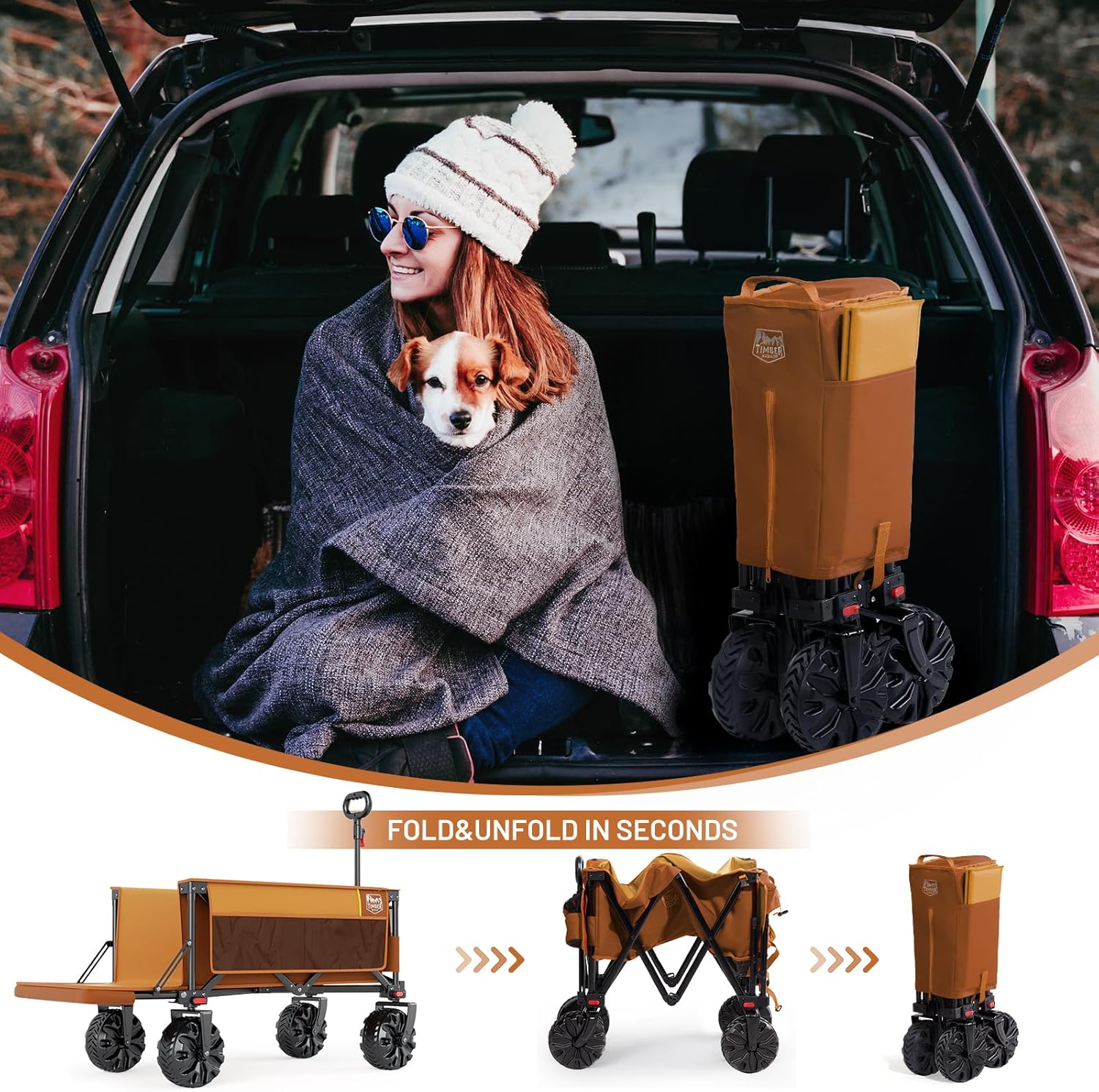• Extra-Large & Roomy Design: This folding wagon comes with a collapsible tailgate, making it an ideal match for a 10x10ft pop-up canopy. Boasting an impressive 250L (8.83 cu.ft) storage space, it offers 50% more capacity than standard wagons. Its pet-friendly design allows your furry friends to hop in and out effortlessly.