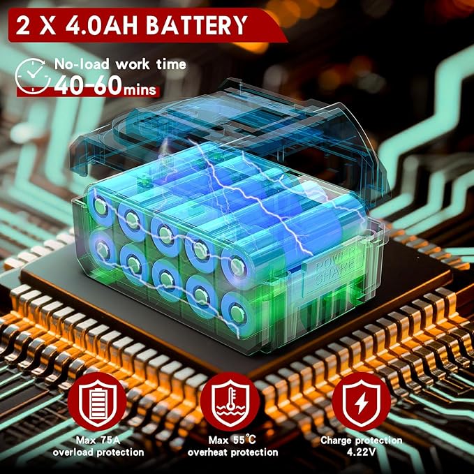 • Long-Lasting Battery Life : SundpeyPRO cordless garden weeder tool, with 2x4.0Ah high-capacity lithium-ion batteries and charger, two batteries are used alternately to reduce your power and distance anxiety, no-load working time 40-60 minutes, with 75A overload protection and 55℃ overheat protection and charging protection 4.22V, safe and reliable