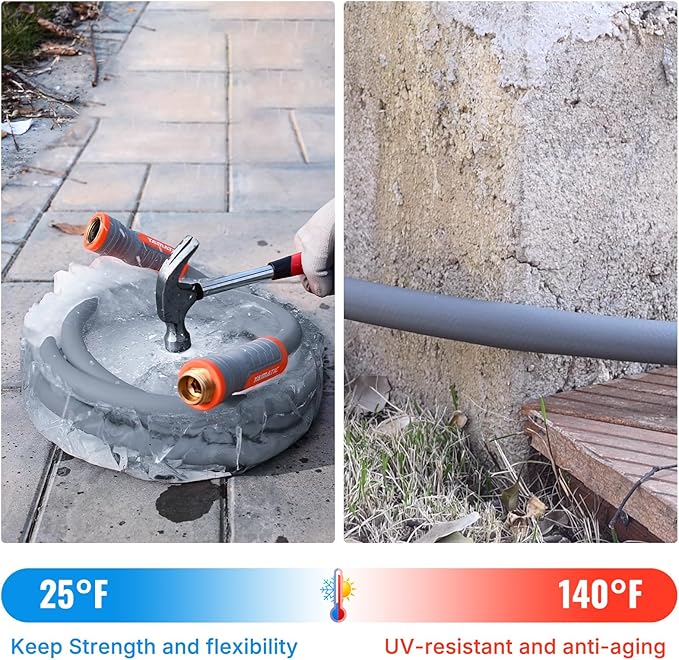 • Sturdy and Durable - Integrated with industry engineering, stand up to Burst 600 PSI / Work 200 PSI, top-level strengthen hose than similar. Come with heavy-duty solid brass 3/4" GHT one female end and one male end, support you widely work from home garden to commercial work for long years.