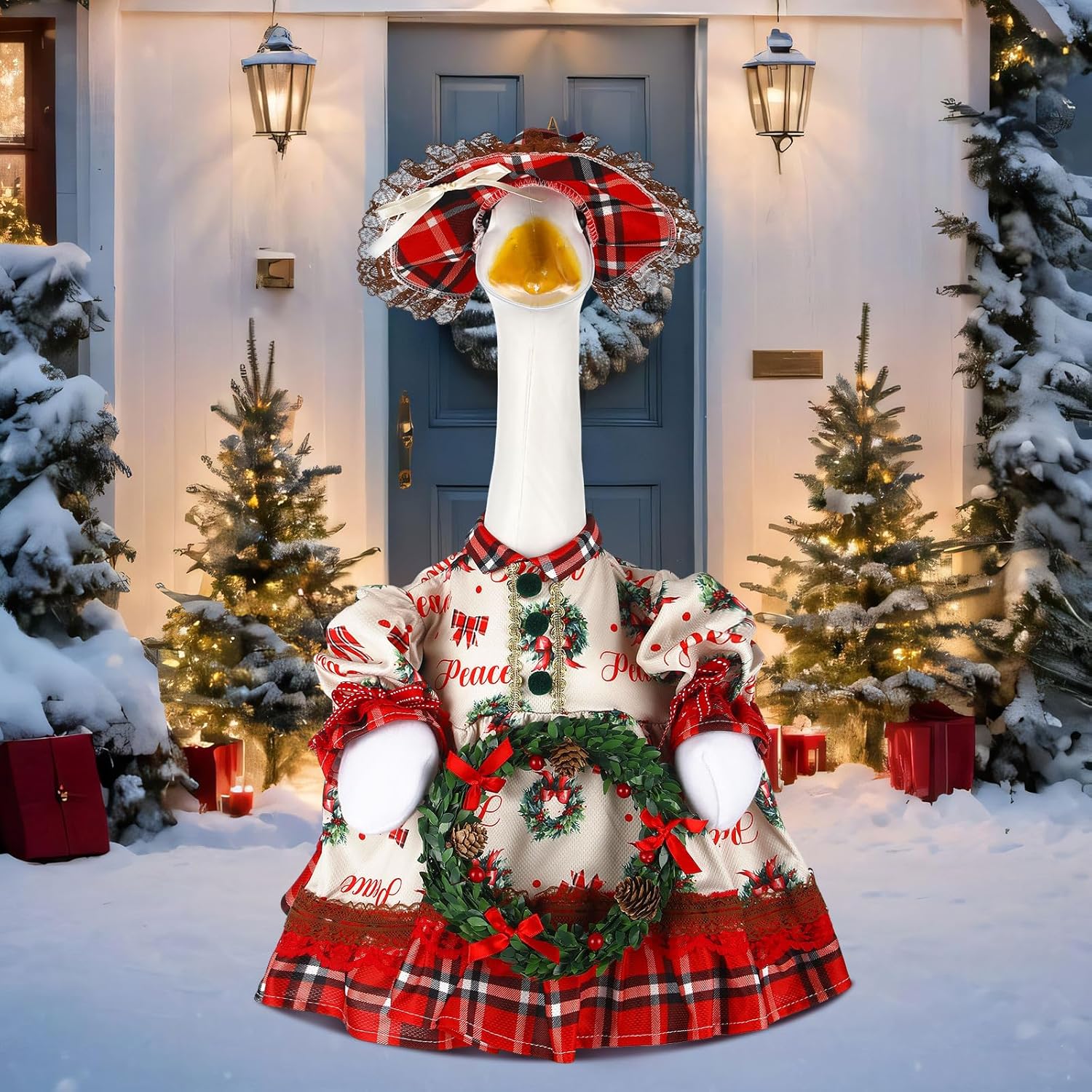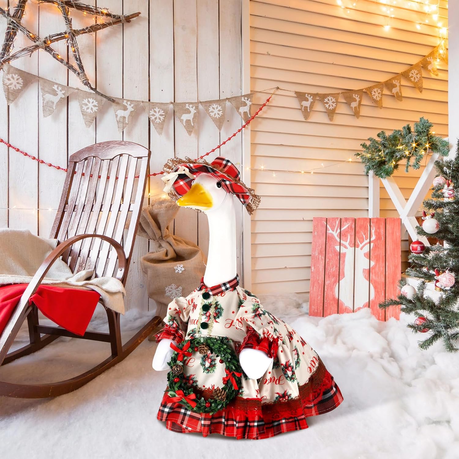 • Porch Goose Costume Set: surprise your neighbors and bring a smile to every passerby by dressing your porch goose in this costume; This sophisticated Christmas wreath goose costume is elegant and festive and fits a 23 inch goose
