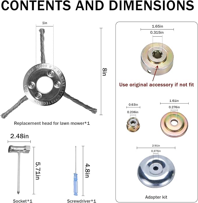 • Latest Upgrade: This steel wire grass trimmer head uses super-strong high-carbon steel wire, which is 2.3 times thicker and has an industry-leading hardness. It is super wear-resistant and durable. It is not easy to deform or break even if it is weeded continuously for a long time. It is sturdy and durable, not afraid of stones, and weeds are removed in seconds. Detailed instructions are included.