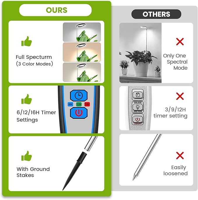 • Smart Controller: Our plant grow light features 5 dimmable levels, 3 spectra modes (white/ warm white+red/mix light), and upgraded automatic on/off timer 6/12/16Hrs. To create the optimal growth environment for your plants