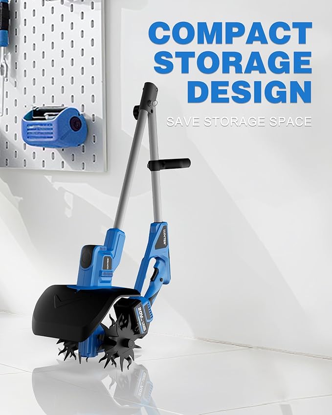 • 【Cordless Design】:The LUXTER cordless design frees the garden tiller from power cord restrictions, allowing users to move easily across gardens, fields, and orchards without worrying about outlets or tangled wires. Lightweight and low-noise, it’s easy to use, low-maintenance, and ideal for home gardening, offering a more flexible, efficient, and user-friendly experience