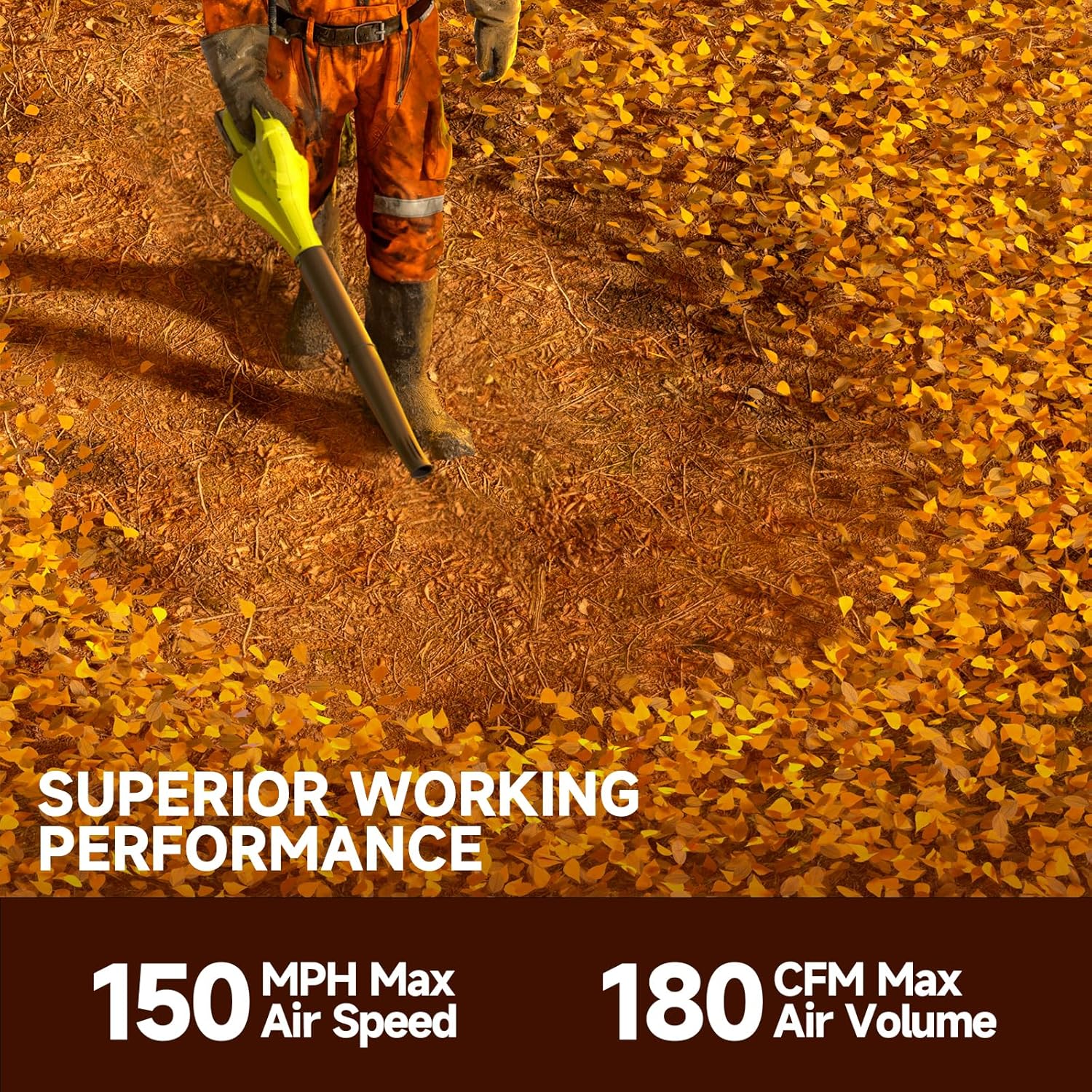 • POWERFUL EFFICIENT CLEANER: Pulituo cordless leaf blower makes yard work effortless with no need for gas or cords. The battery blower's 17,000 RPM copper motor delivers stronger, faster performance. Compact and lightweight design features advanced turbo tech for max airflow, reaching 150 MPH blowing speed and 180 CFM air volume.