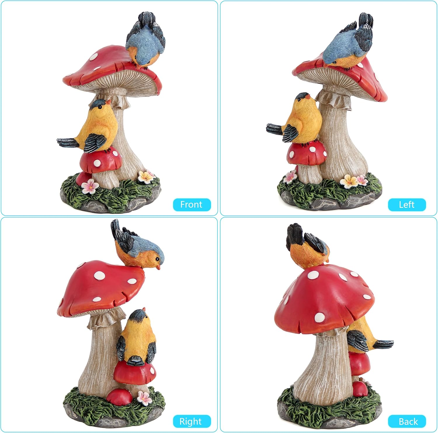 Leekung Bird Garden Statue for Outdoor Decorations,Bird Figurines Mushroom Statue for Garden Decor,Birds Decoration for Garden Patio Yard Lawn Home Shelf Decor Accent,Birds Gifts for Mom