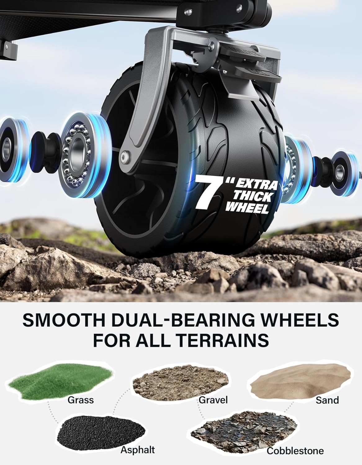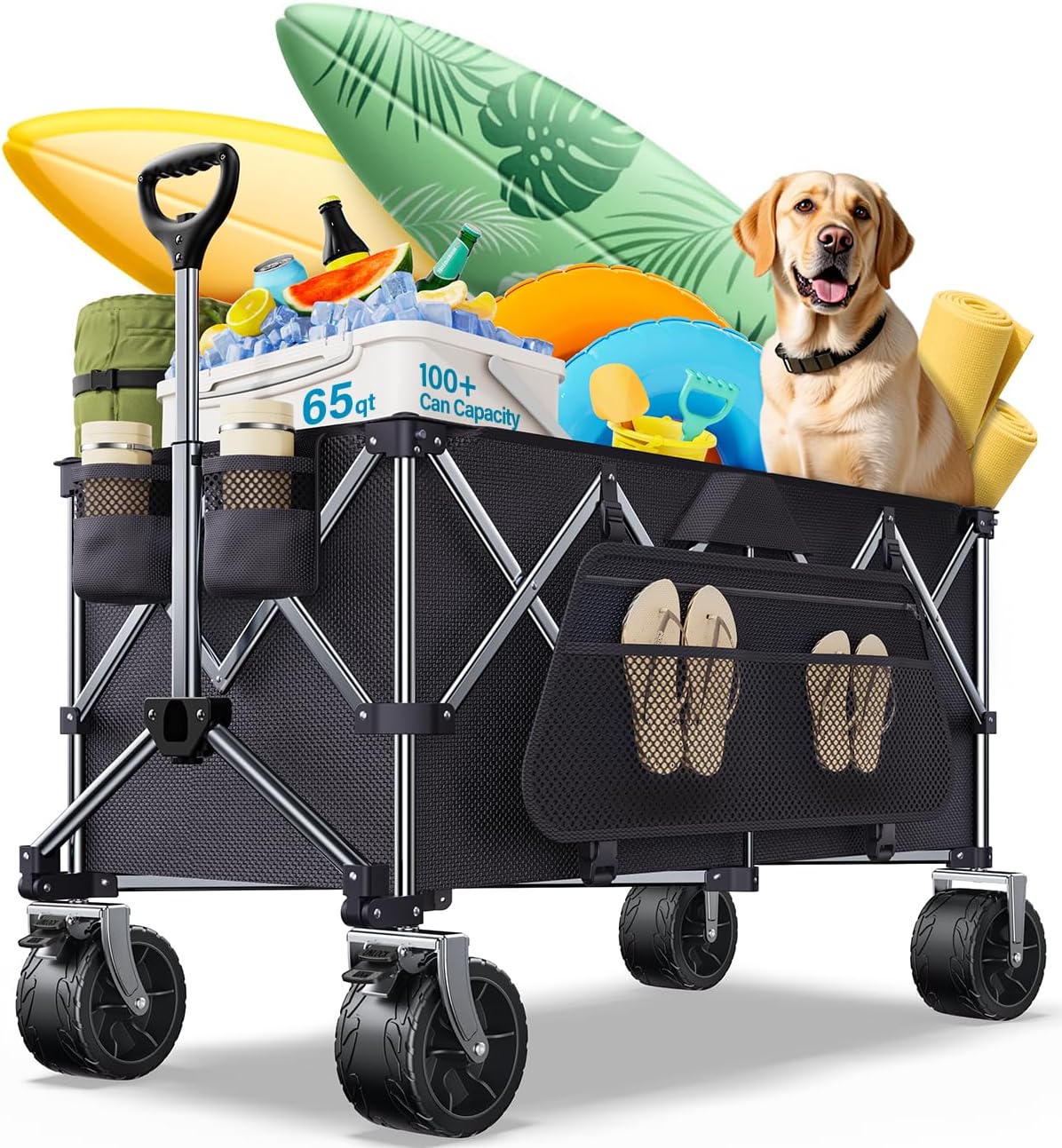 • Wagon for All Terrain: Oversized wheels with dual bearings for smooth navigation on sand, gravel or grass, with 360° turning; The advanced braking system ensures secure stops on any terrain, including slopes and sandy surfaces