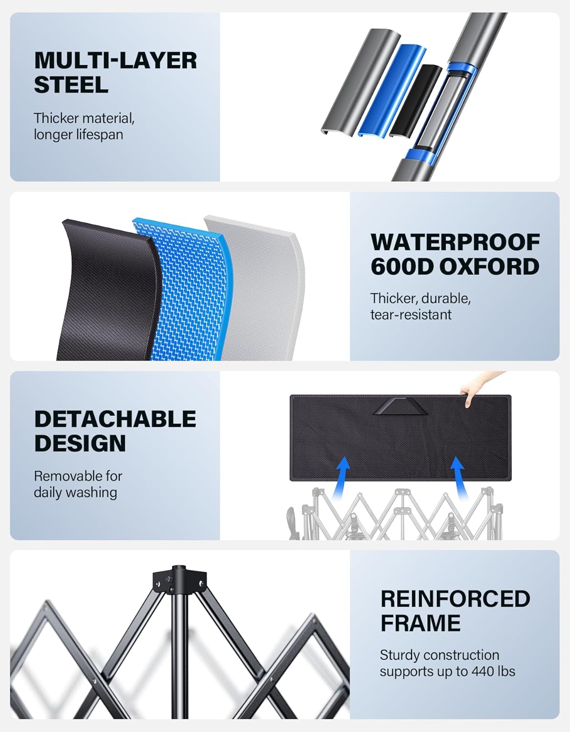 • Washable 600D Oxford Fabric Wagon: Made from waterproof, tear-resistant 600D Oxford fabric with reinforced double stitching for durability; The fabric is easily removable for washing, ensuring your wagon stays fresh and ready for your next adventure