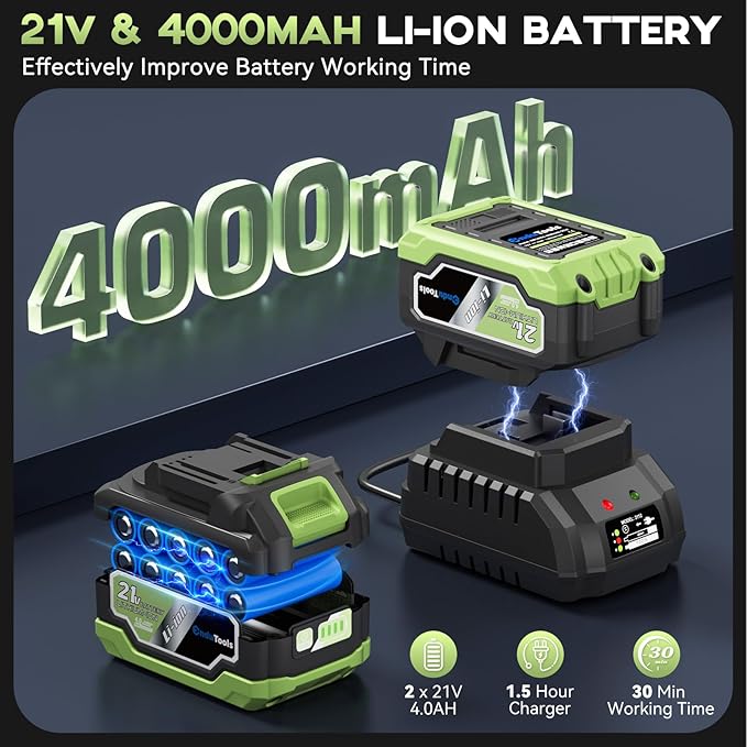 - Dual 4.0Ah Batteries & Fast Charging: EnduTools cordless leaf blower includes two 21V 4.0Ah lithium batteries and a high-efficiency 2A fast charger. Each charge provides up to 30 minutes of run time (two batteries run time), allowing you to clean your outdoor space without frequent interruptions. The fast charger fully charges the batteries in just 90 minutes, eliminating long idle times and ensuring uninterrupted yard work with this reliable battery-powered leaf blower
