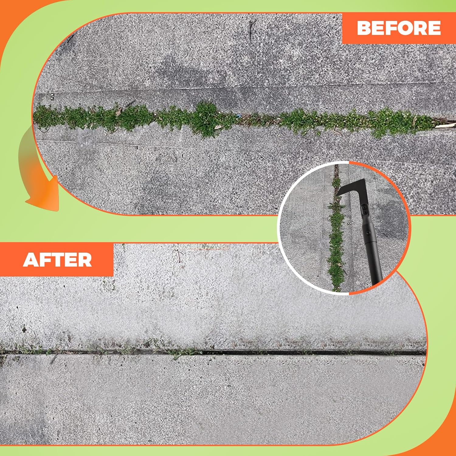 • Versatile Crack Weeder: The crack weeder features an adjustable length extending up to 43.7 inches, ensuring effortless access to hard-to-reach areas without bending or kneeling. Three length settings allow simple adjustment by adding or removing tubes.