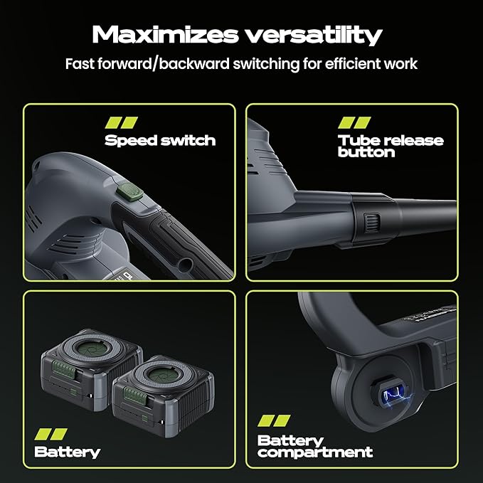 • Cordless blower tools well balanced and easy to swing back and forth. Quiet, light and simple to use, it’s ideal for gardeners of all abilities.