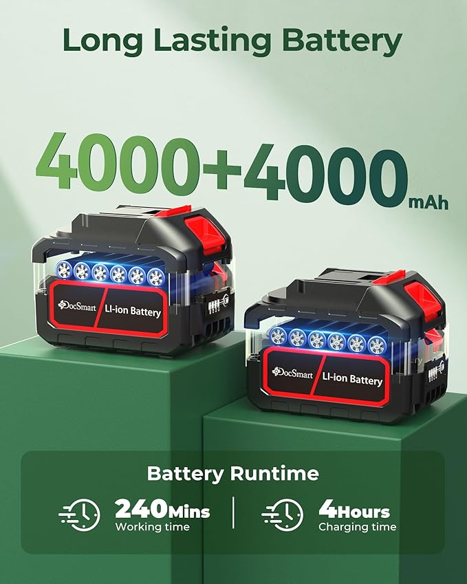 - Cordless & Portable: The handheld hedge trimmer takes about 4 hours to full charge and can work for 240 minutes. It comes with 2 pcs 4000mAh rechargeable batteries. 1 Green light on the battery represents 25% power. Say goodbye to struggling with electrical cords and make your garden art easier. Our hedge clipper is compatible with Makita batteries, but our device batteries aren't compatible with Makita devices