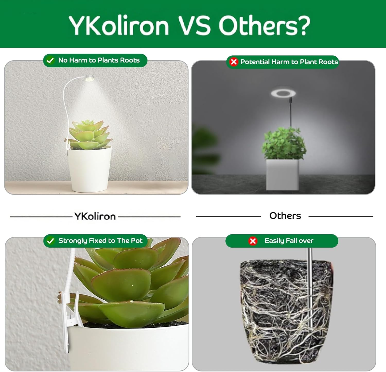 • Energy-Efficient & Little Indoor Grow Light: Our grow light for indoor plants delivers brighter illumination with higher efficiency. This mini grow light rechargeable, provides an impressive 35.58 μmol/s/㎡ PPFD at just 6.5 inches. Compared to similar 10W lights, it uses 54% less power while boosting plant growth by 27%—making it one of the most efficient full spectrum clip plant growing lamp.