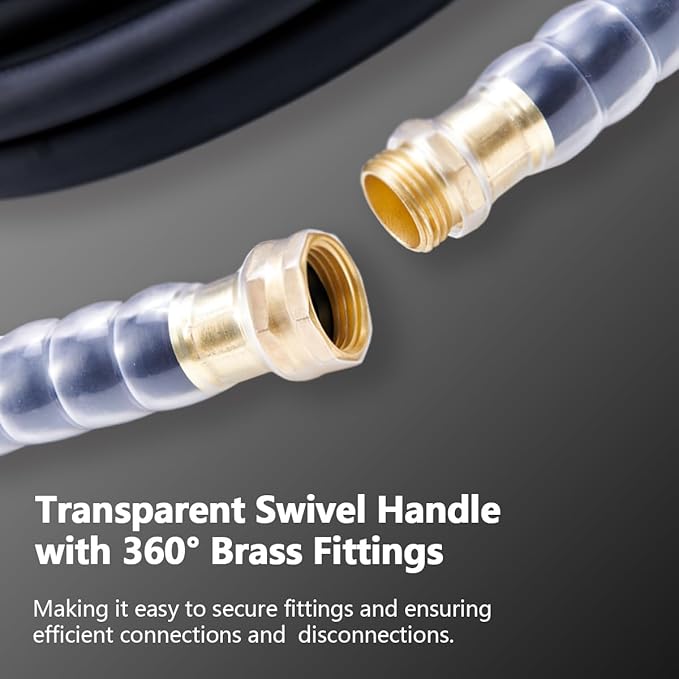 • Transparent Swivel Handle: LANGARA garden hose features a standard 5/8" outer diameter and is equipped with transparent swivel protective handles, making it easy to secure fittings and ensuring efficient connections and disconnections.