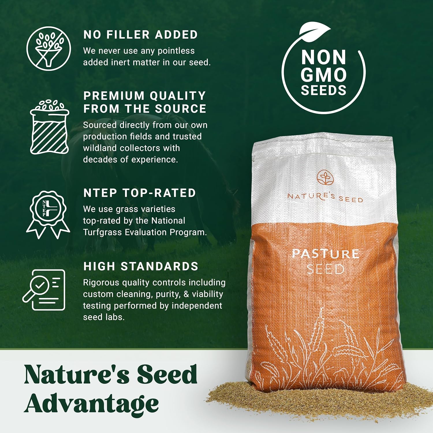 Nature's Seed Northern Horse Forage Mix, Equine Pasture Grass Seed Nutrition Blend, 10 lbs