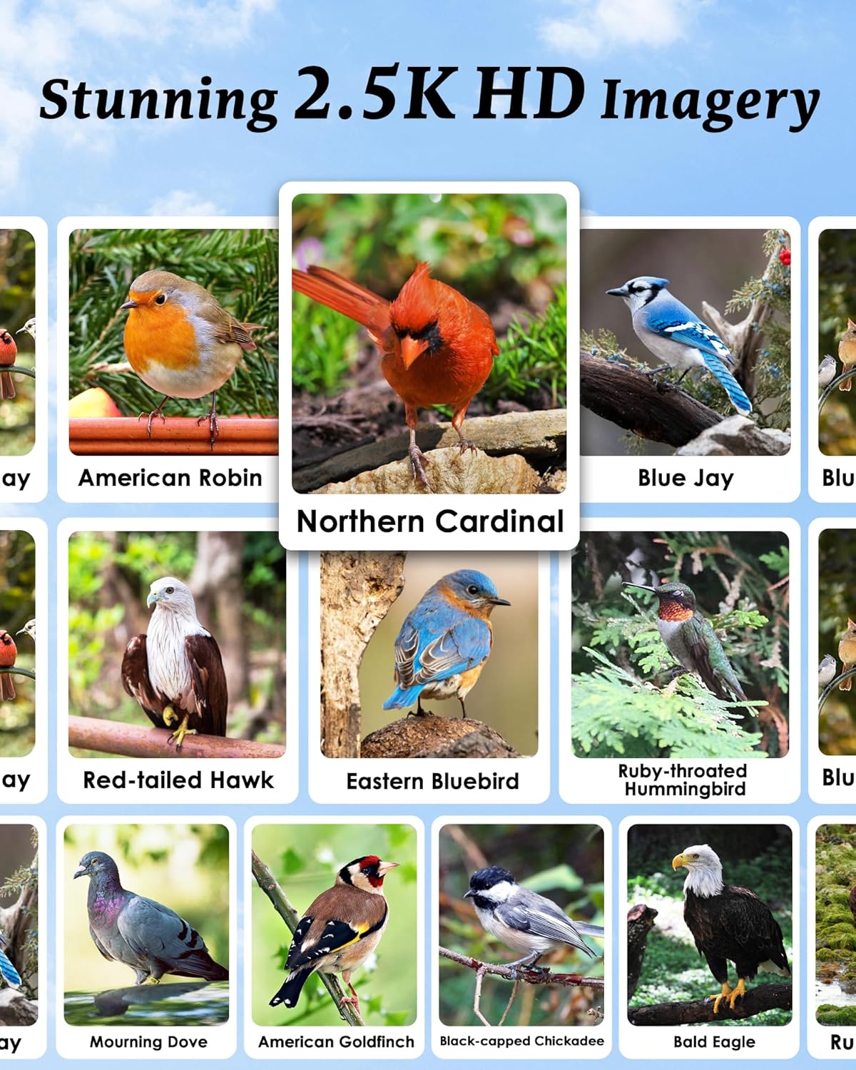 • Wake Up to the Sound of Nature - Smart Bird Feeder with Camera. Imagine opening your window to cheerful chirps and watching visiting birds live in 2.5K HD clarity through your phone. This smart bird feeder camera turns your backyard into a private bird sanctuary - a peaceful place to reconnect with nature every morning.