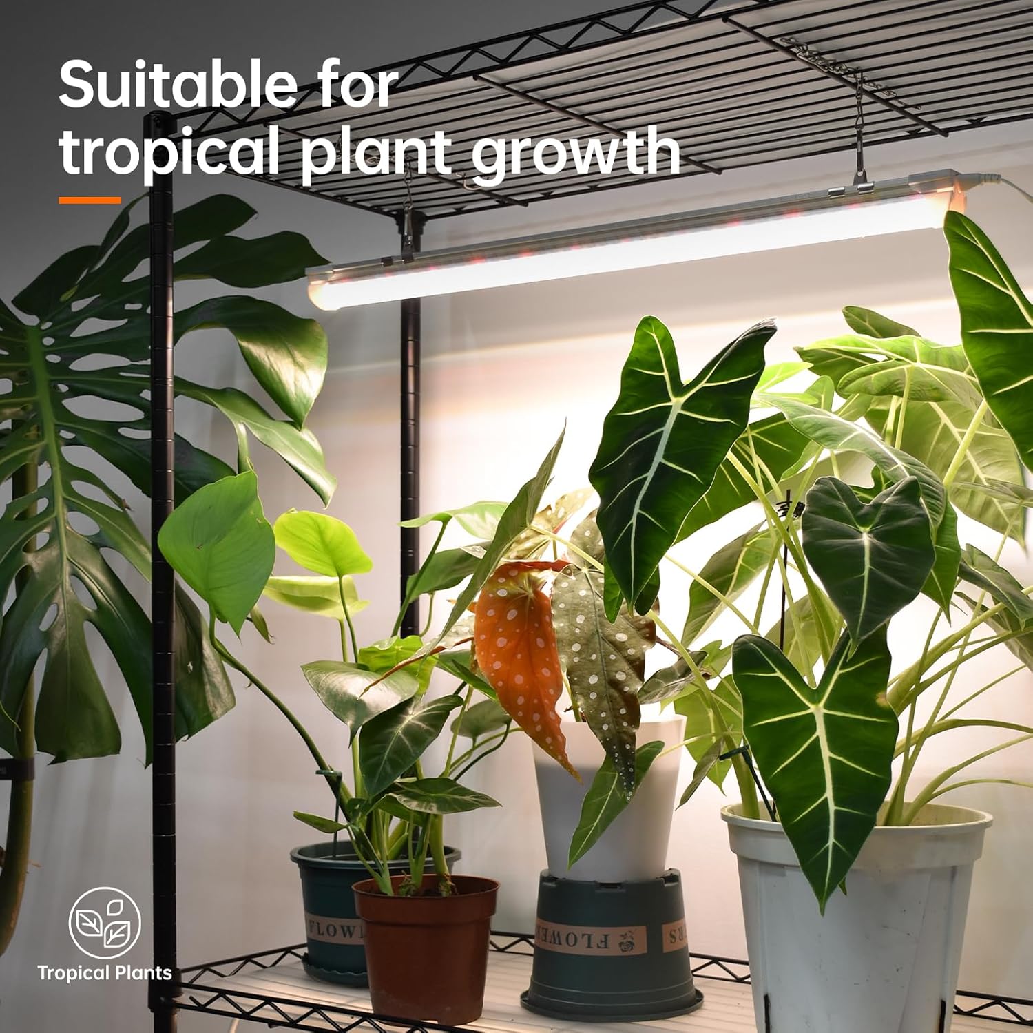 • Full Spectrum and High PPFD - The five grow lights or indoor plants included in this setup deliver a full spectrum of plant light that closely resembles natural sunlight, supporting various stages of plant growth. This promotes faster and healthier development. Each grow lights for seed starting consumes only 24 watts while providing an output of 343.7μmol/㎡/s at 4-inch distance. These professional-grade grow lights are ideal for seed starting, growth, and flowering