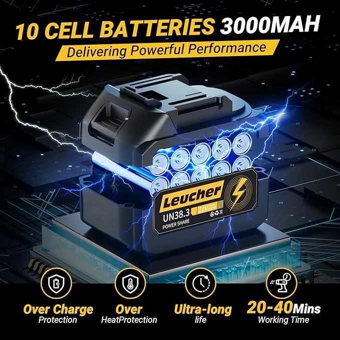 • 【21V*2 Pcs Batteries 】The cordless leaf blower with battery and charger comes with 2*21V batteries, which can work continuously for 40 minutes (20 minutes per battery), and the hand blower has built-in high temperature protection to ensure safe operation. If the machine stops, wait 20 seconds to reinstall the battery. Please fully charge the battery when not in use for a long time to extend blower cordless life.